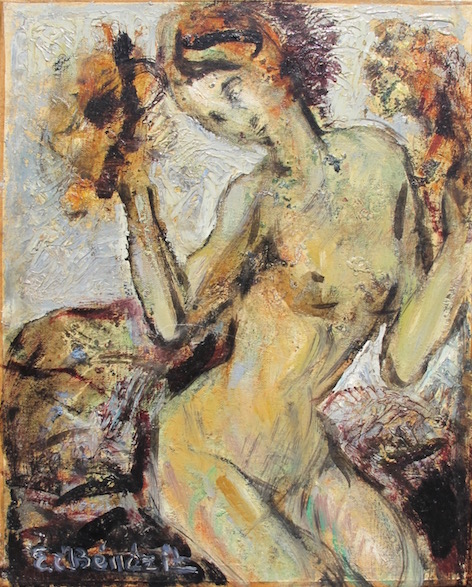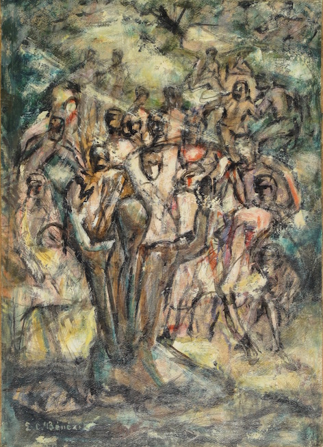 « Porteur d'une certitude née de sa vision intemporelle de l'art, celle qui couvre la toile d'une « structure absolue », Bénézit créa ses compositions qui sont l'âme de son oeuvre. Peinture qui bouge, qui vit, se déforme et se tord quand on la regarde, comme pour insérer le plan du tableau dans la courbure de l'univers. » |