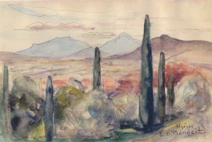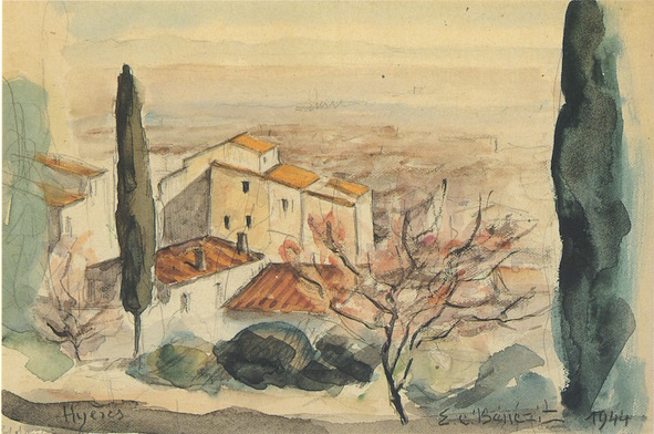 "Hyères" 1944 - Dessin aquarellé (13x20,5cm) "Hyères" 1944 - Watercolor drawing (13x20,5cm) |